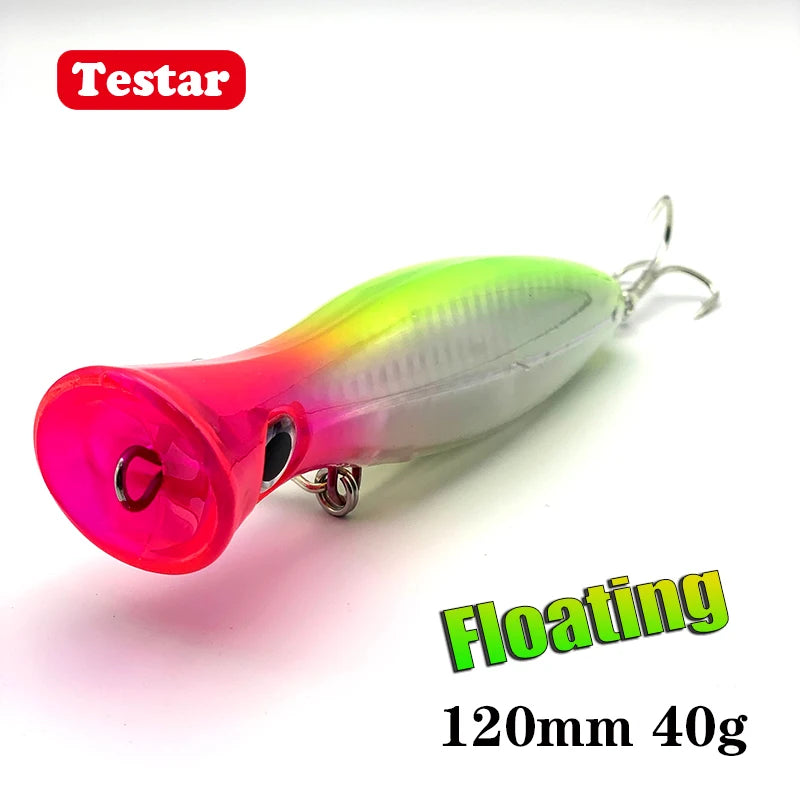 120mm 40g Testar Fishing Lure Long Casting Floating Popper Bait Artificial Wobblers Topwater Hard Bait for Bass Pike Pesca