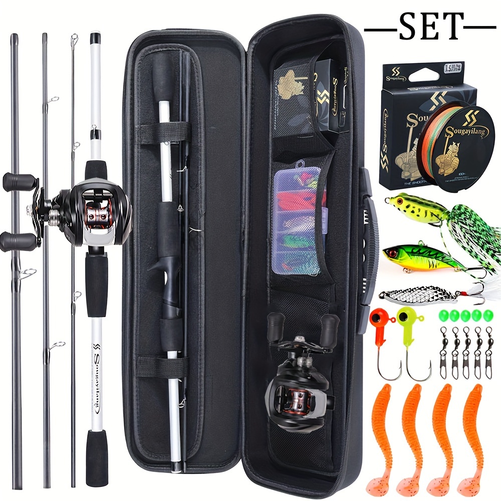 Sougayilang Baitcasting Fishing Combination 1.98m/6.5ft Portable Fishing Rod 12+1 Bb Casting Fishing Kit for Travel Saltwater Freshwater Fishing Kit