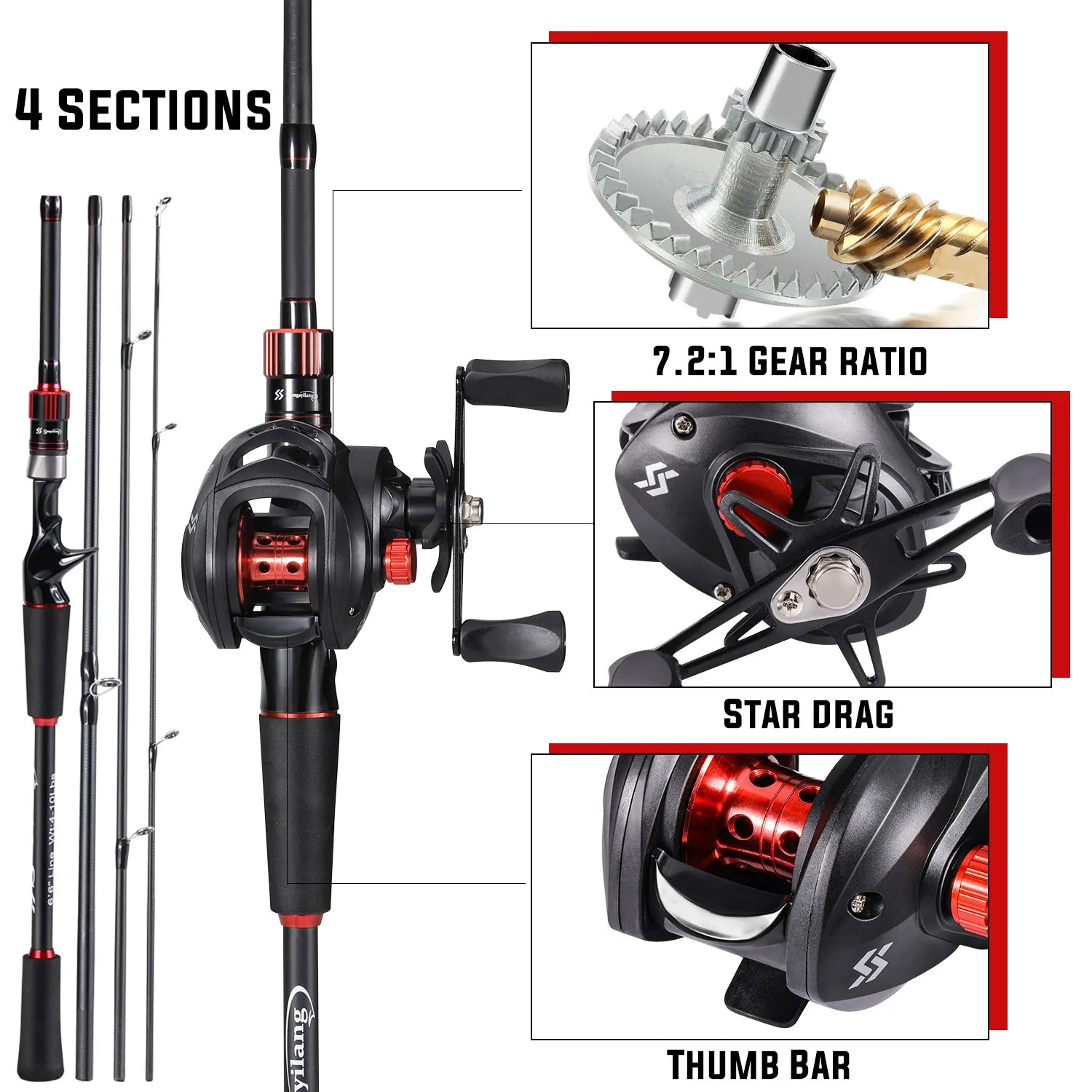 Sougaliyang Black/Red Bait-Cast Rod Combo
