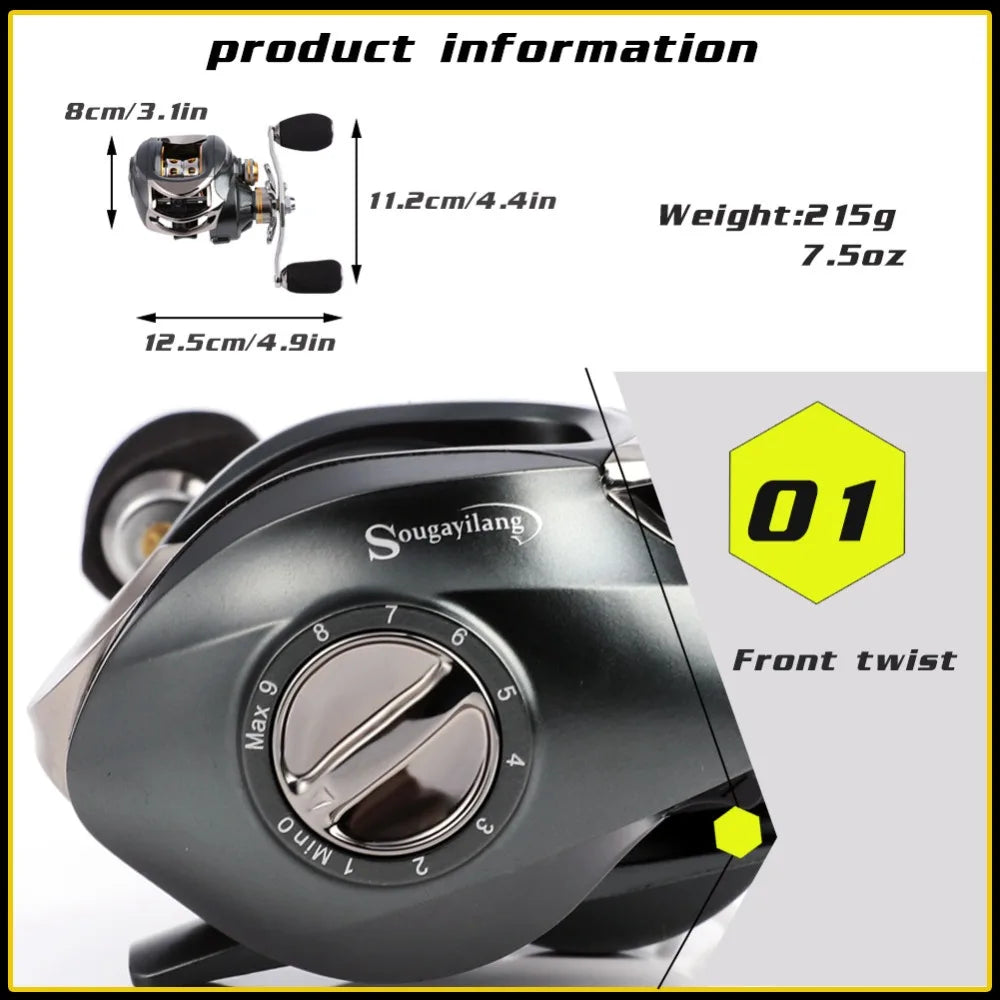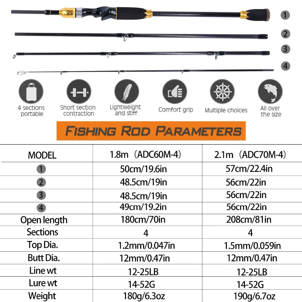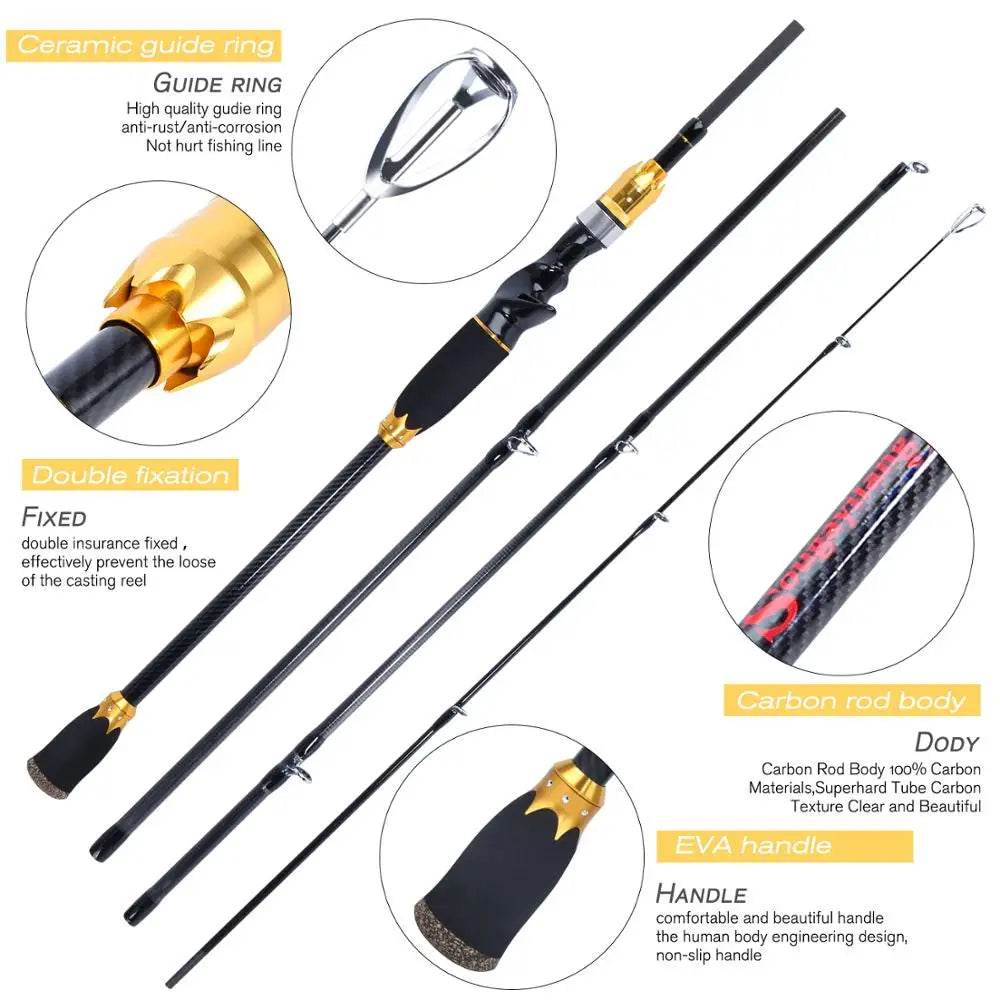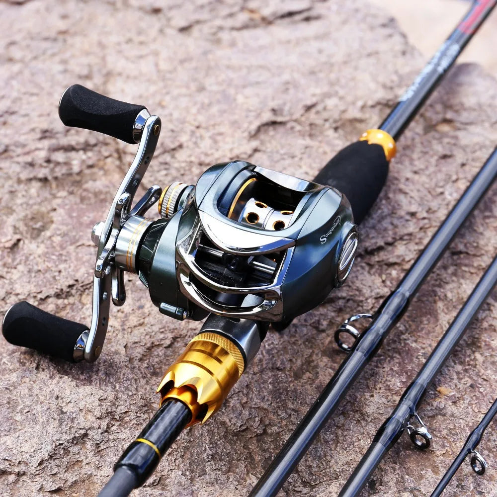 Sougayilang 2.12m Fishing Rod and Baitcasting Reel Combo 4 Sections Carbon Spinning Lure Rod and Casting Fishing Reel Sets Pesca