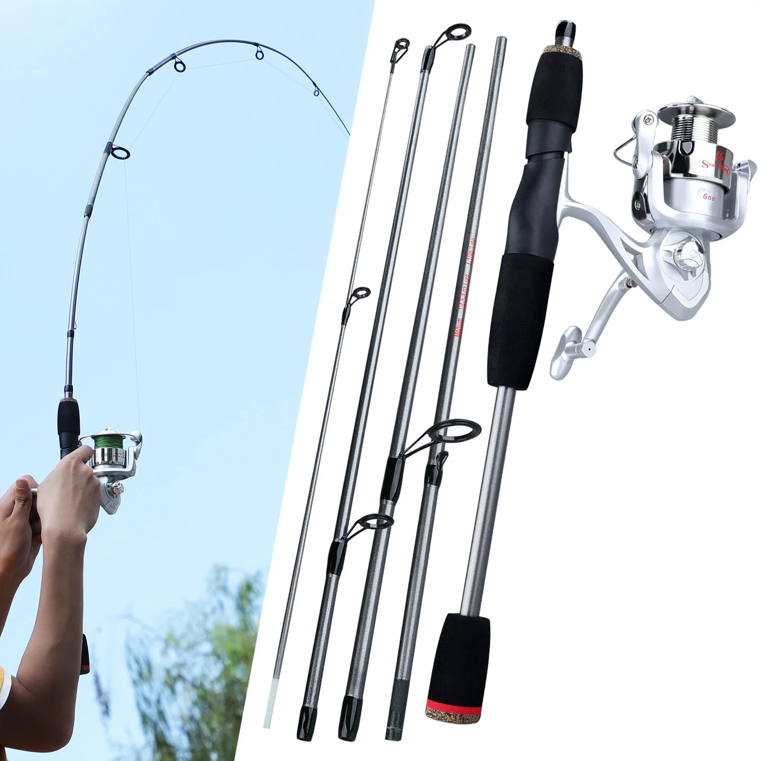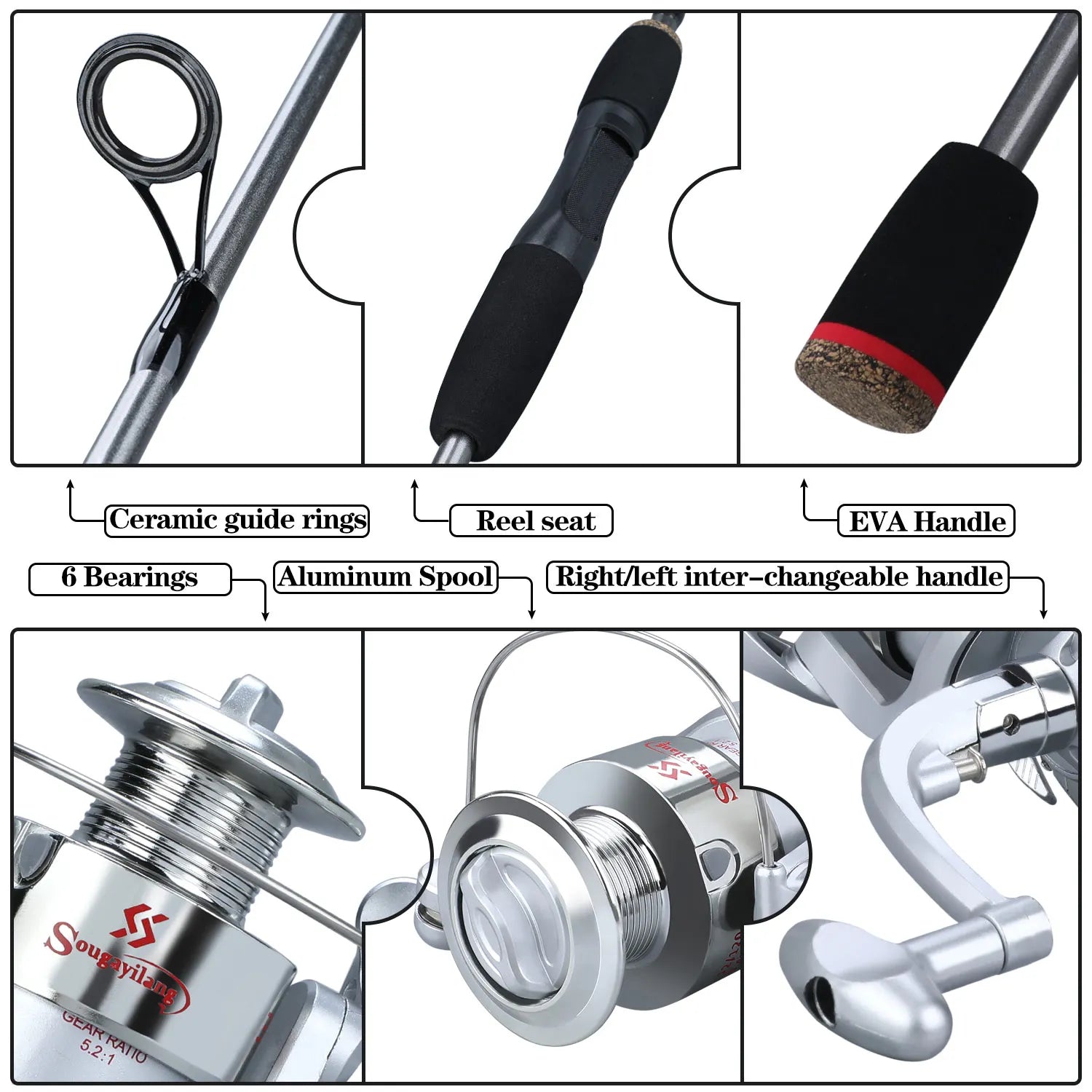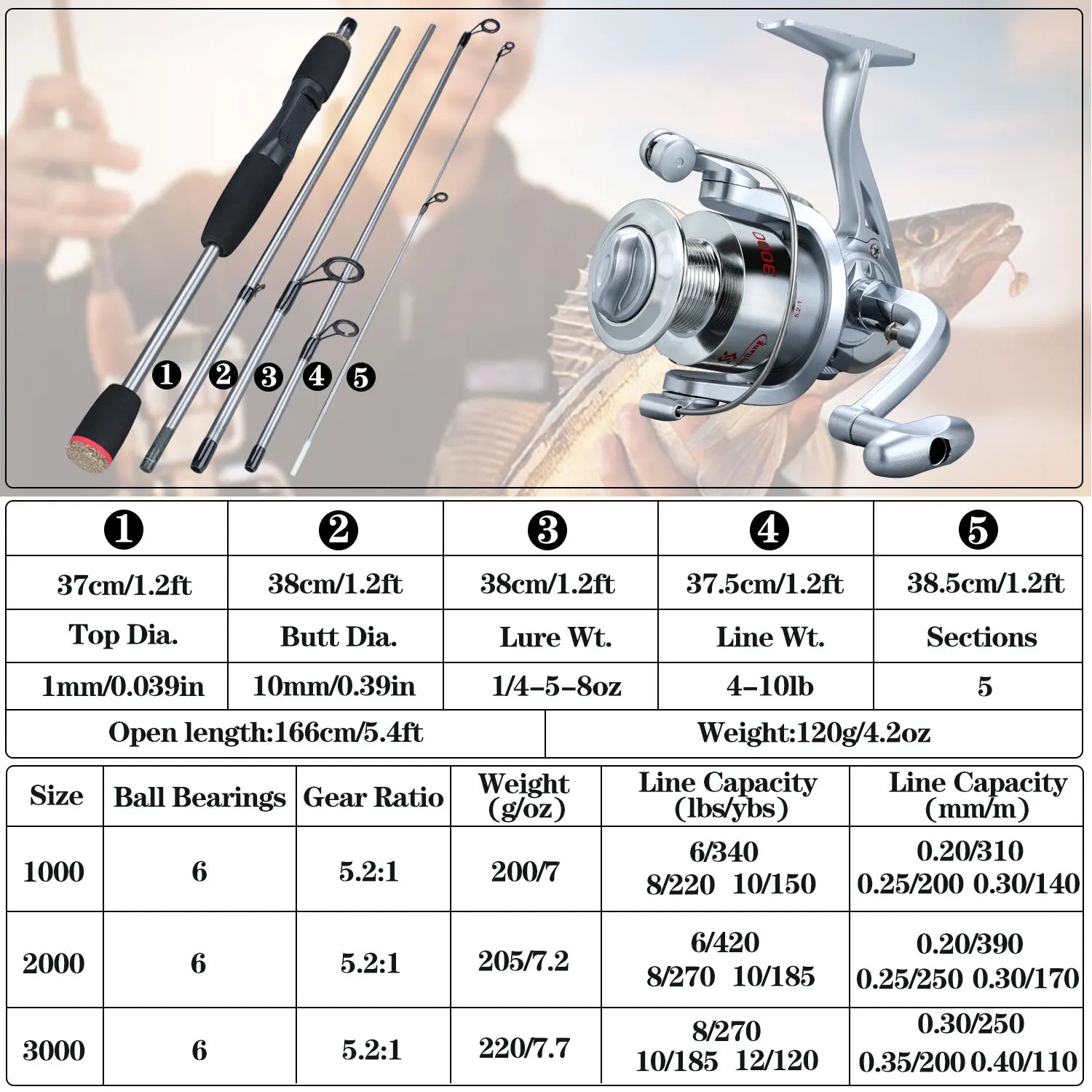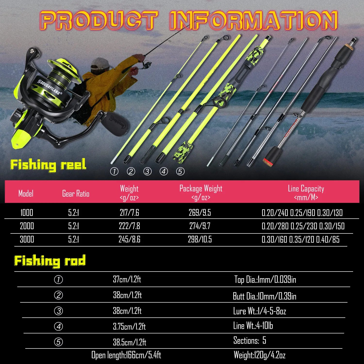 Sougayilang Spinning Fishing Combo 5 Sections Carbon Fiber Lure Fishing Rod 1000-3000 Spinning Reel with Fishing Line Accessorie